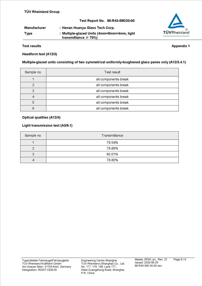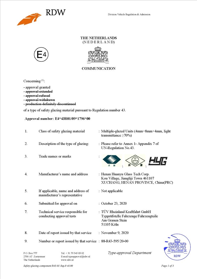 河南環(huán)宇玻璃科技股份有限公司年產(chǎn) 5 萬(wàn)平方米驗(yàn)收?qǐng)?bào)告公示
